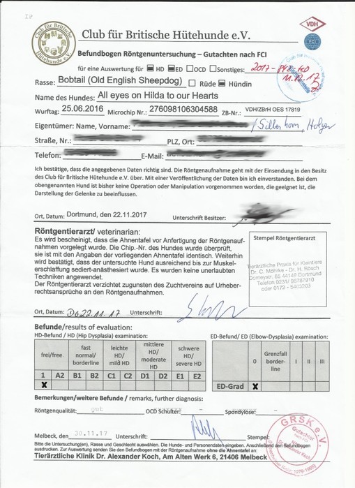 Wurftag: 25.06.2016 ZBNr.: VDH/ZBrH OES 17819